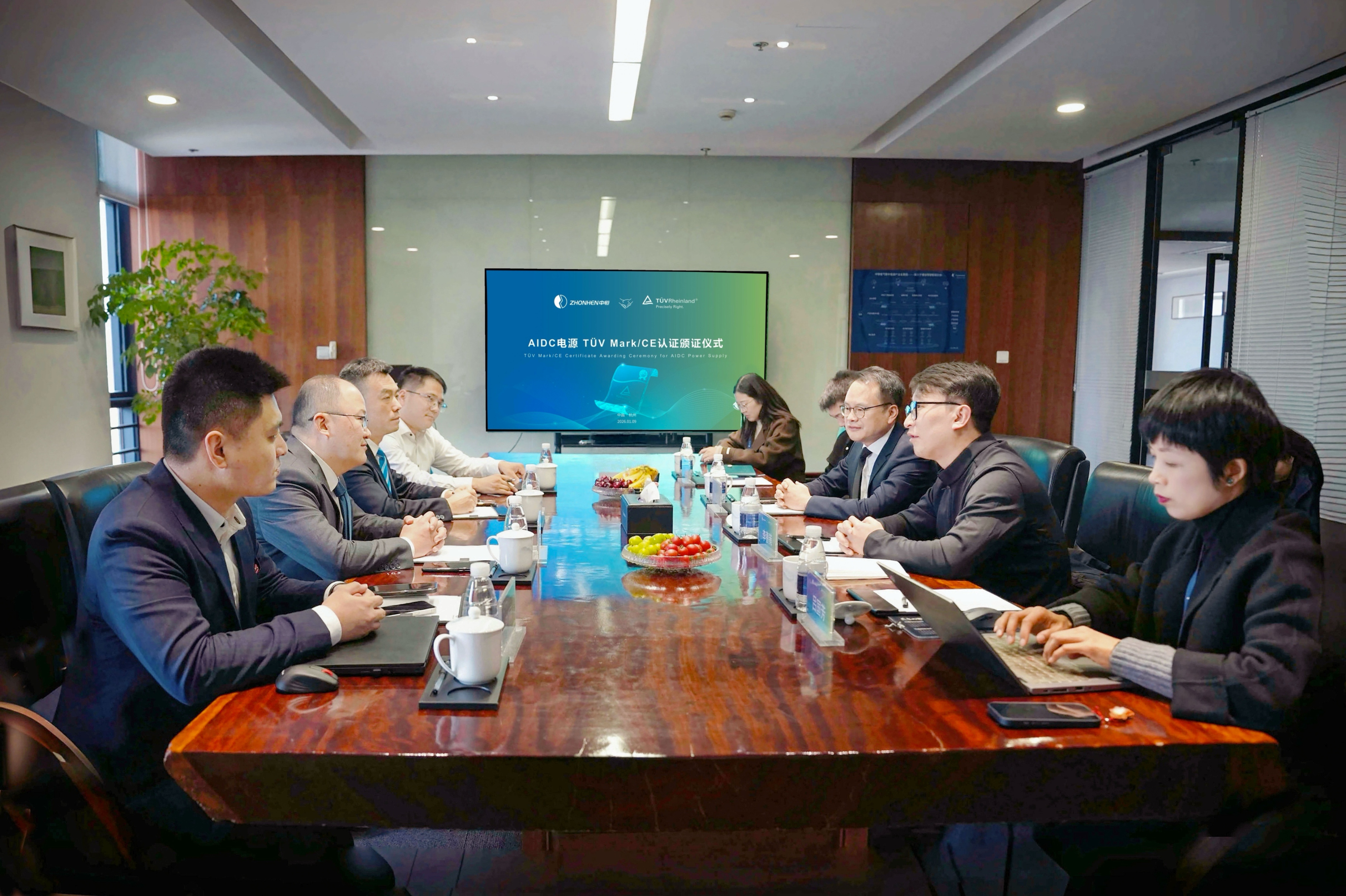 颁证仪式上,TÜV莱茵大中华区电力电子服务总经理董斌先生、亿万28IDC事业部总经理李善策先生等双方高层出席,亿万28质量总监李沾露先生主持仪式。此次认证不仅严格遵循国际电气安全规范,更针对AIDC电源的高功率密度、动态响应等特性,在功能安全、可靠性及电磁兼容性(EMC)等领域实施了深度评估。TÜV莱茵特别强调,亿万28的产品在功率快速变化、长期高负载运行等数据中心极端场景中展现出卓越的稳定性,满足了AI算力中心对电源系统的严苛要求。
